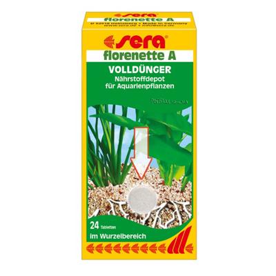 Однієї таблетки Sera Florenette A достатньо приблизно для 20 літрів води. Добриво діє як комора поживних речовин. Активні речовини, що входять до його складу, вивільняються повільно.
