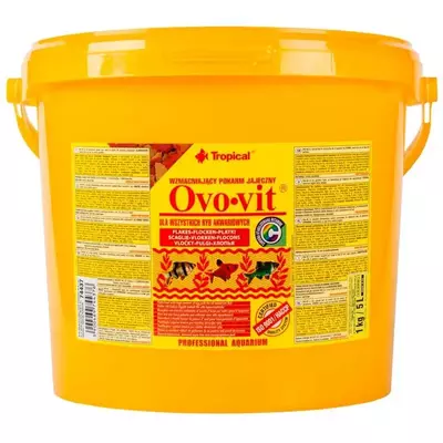 Tropical Ovo-Vit - це спеціальний корм у формі пластівців, розроблений для всіх видів риб. Він містить високоякісний яєчний білок, який необхідний для здоров’я риб. Крім того, корм містить необхідні вітаміни, мінерали та мікроелементи, які допомагають покращити імунітет та загальний стан риб. Регулярне використання корму Tropical Ovo-Vit сприяє росту, розвитку та зміцненню здоров’я риб у вашому акваріумі.