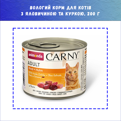 Вологий корм Animonda Carny Adult Beef and Chicken з яловичиною та куркою для котів, 200 г